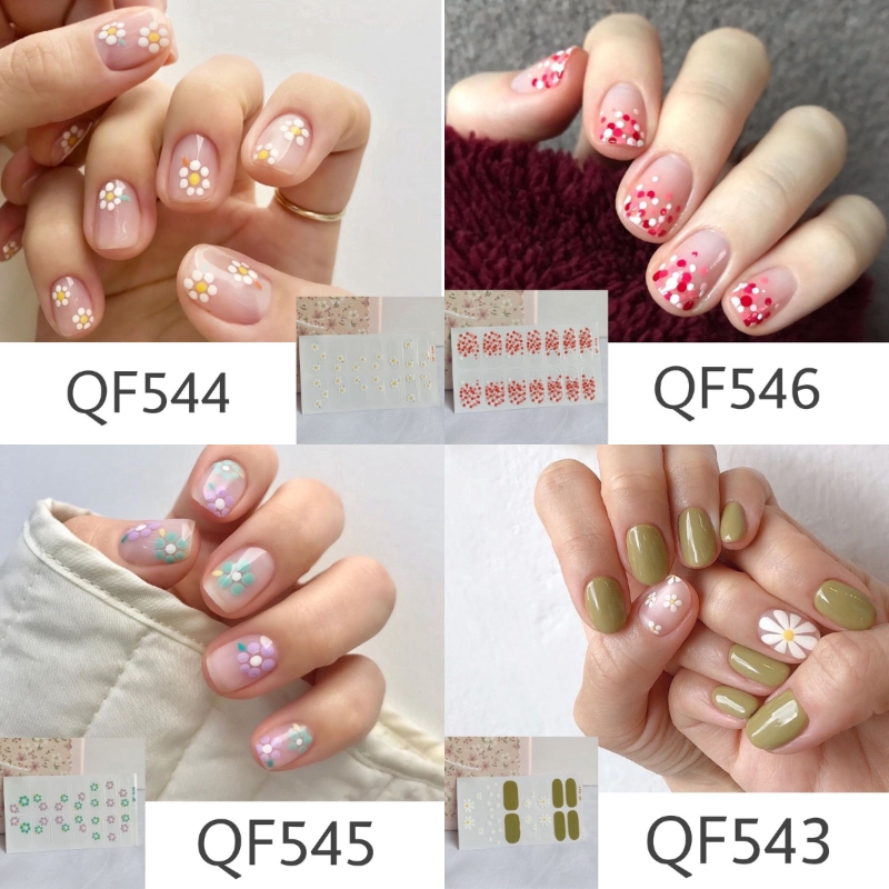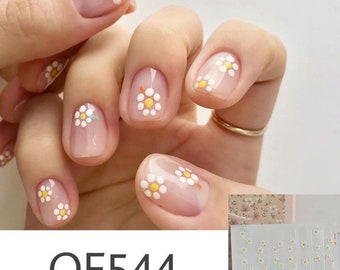 . About 25 x 21inch Pattern. Were giving you the step-by-step instructions for creating daisy nails on a milky background. 12 sheets daisy nail stickers water transfer decals daisy pattern are designs for nail decorationcan be used on natural false gel acrylic or stick on nails.